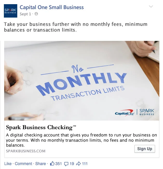 Unlimited Business Banking Overt Facebook Ad