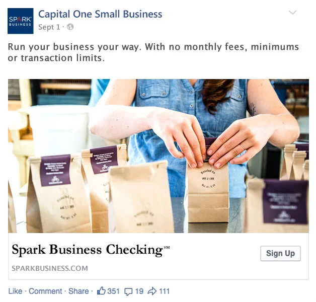 No Strings Business Banking Native Facebook Ad